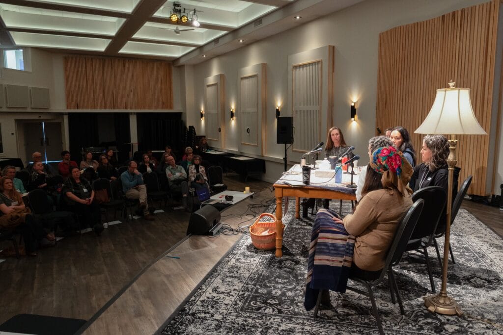 The morning’s featured table conversation brought together women whose work reflects years of collaboration across the regional food system — from food banks and school meal programs to farming, Indigenous food sovereignty, and seniors’ food access. Grounded in the symbolism of the kitchen table where Land to Table first began, the discussion explored how relationships, trust, and shared learning have shaped a more connected and resilient food system. Speakers reflected on how collaboration has evolved through networking, shared staffing, joint research, and coordinated funding, helping organizations respond to rising food insecurity, increasing costs, and growing demand in ways no single group could manage alone.